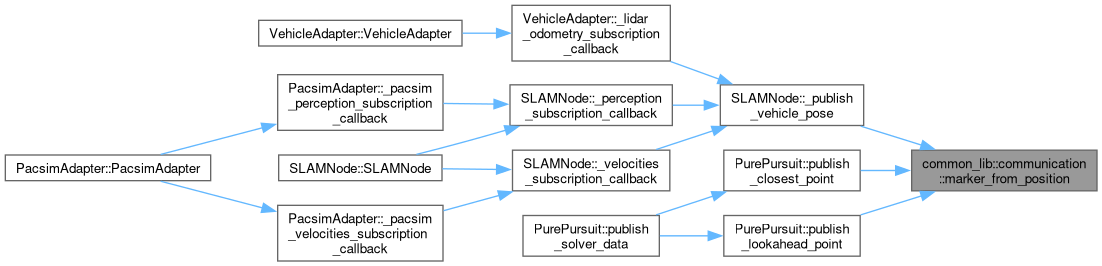 | visualization_msgs::msg::Marker | marker_from_position (const common_lib::structures::Position &position, const std::string &name_space, const int id, const std::string &color="red", float scale=0.5, const std::string &frame_id="map", const std::string &shape="sphere", int action=visualization_msgs::msg::Marker::ADD) |