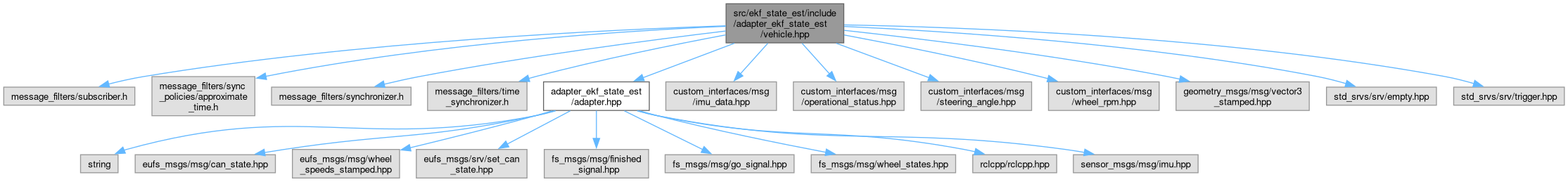 #include <message_filters/subscriber.h>#include <message_filters/sync_policies/approximate_time.h>#include <message_filters/synchronizer.h>#include <message_filters/time_synchronizer.h>#include "adapter_ekf_state_est/adapter.hpp"#include "custom_interfaces/msg/imu_data.hpp"#include "custom_interfaces/msg/operational_status.hpp"#include "custom_interfaces/msg/steering_angle.hpp"#include "custom_interfaces/msg/wheel_rpm.hpp"#include "geometry_msgs/msg/vector3_stamped.hpp"#include "std_srvs/srv/empty.hpp"#include "std_srvs/srv/trigger.hpp"